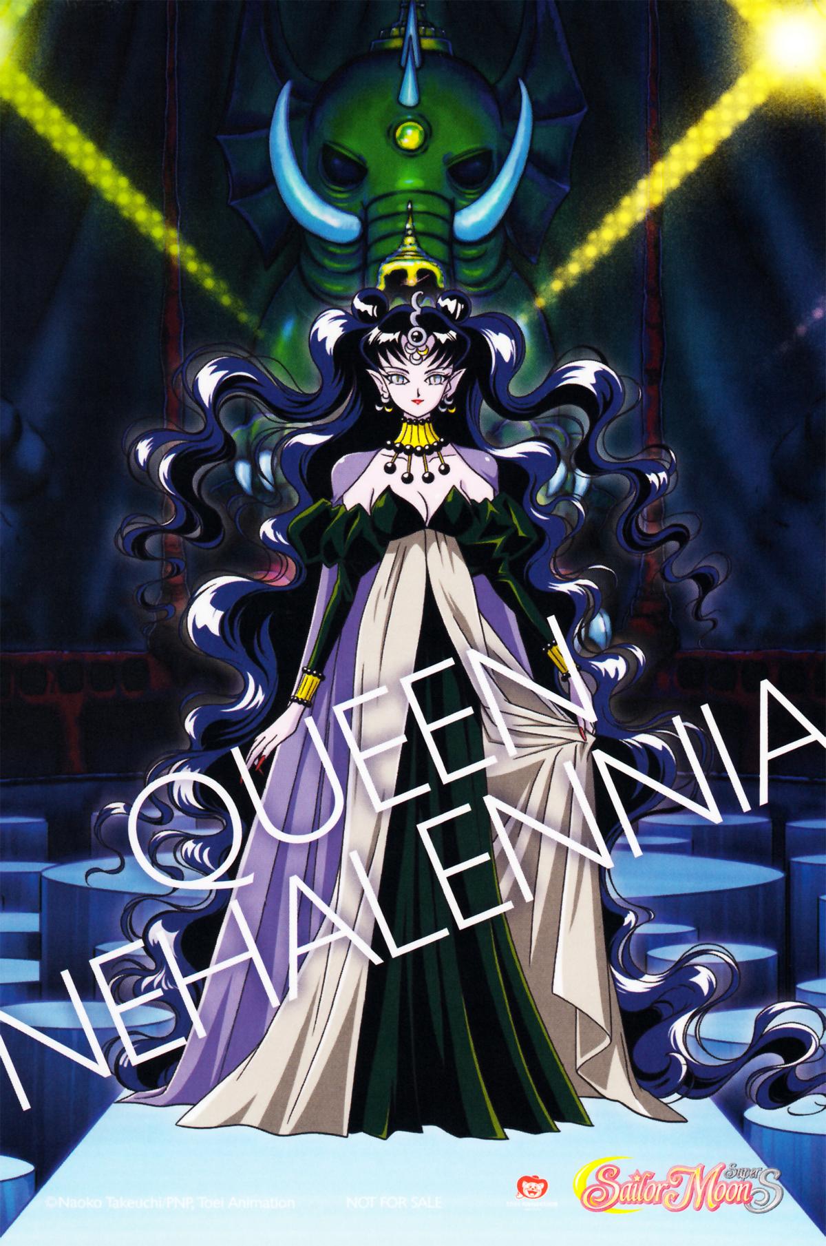 Nehelenia spricht mit Hilfe ihres Spiegels mit Zirkonia und gibt ihr Anweisungen. Sie möchte ihr jüngeres Selbst durch den Spiegel in die Gegenwart bringen, aber dazu braucht sie den goldenen Kristall. Der goldene Kristall ist das goldene Einhorn von Pegasus und Nehelenia schafft es, den goldenen Kristall an sich zu reißen und so gelingt es ihr aus dem Spiegel heraus zu kommen. Am Ende wird sie von den Sailor Senshi besiegt und geht freiwillig zurück in den Spiegel, um für immer jung und schön zu bleiben. Am Anfang der fünften Staffel kehrt Nehelenia durch Galaxia zurück und besiegt fast alle Senshi. Nun erfährt Usagi, dass Nehelenia nur so verbittert geworden ist, weil sie nie Freunde hatte. Eternal Sailor Moon schickt sie zurück in die Vergangenheit, so dass Nehelenia ihr Leben noch einmal leben kann, ohne wieder die böse Königin zu werden die sie mal war.