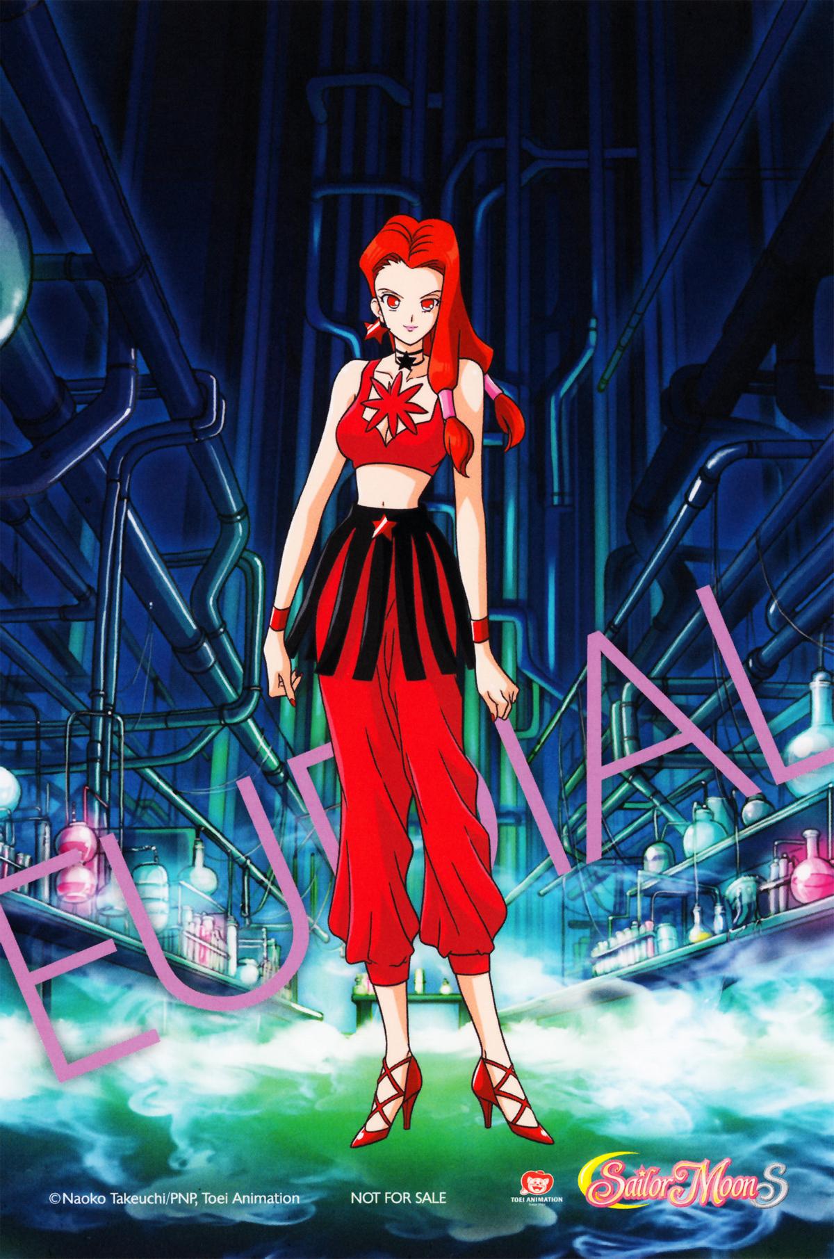 Eugeal findet als Erste heraus, dass Haruka und Michiru jeweils einen Talisman in sich tragen und lockt die beiden Senshi in eine Falle. Ihr gelingt es zwar die beiden Talismane an sich zunehmen, aber den Heiligen Gral schnappt ihr Sailor Moon vor der Nase weg und verwandelt sich in Super Sailor Moon. Eugeal kann entkommen, jedoch wird sie von Mimett aus dem Weg geräumt, da eine große Rivalität unter den Hexen herrscht. [Randnotizen - jap. Name: Eudial | erster Auftritt: Episode 103 | dt. Stimme: Jennifer Wippich | jap. Stimme: Kawamura Maria]