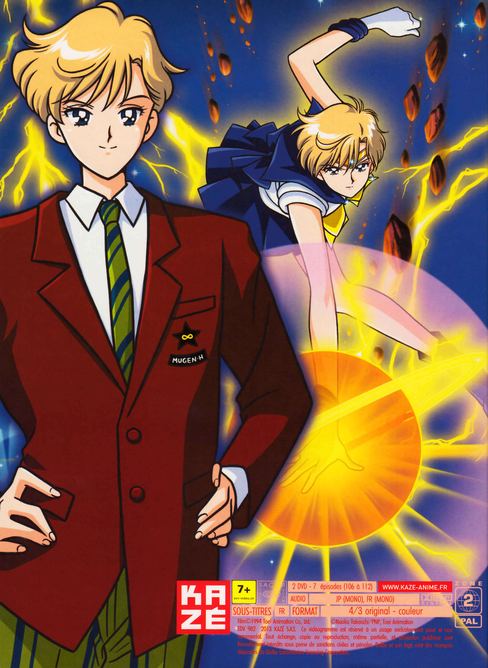 Macht der Uranusnebel, mach auf! - Uranus Planet Power, Make Up!Diese Verwandlung in Sailor Uranus sehen wir in der 3. Staffel. Dazu benutzt sie diesen Verwandlungsgegenstand. Uranus Planet Power, Make Up ist der einzige Transformationssatz, den Haruka verwendet, um sich in Sailor Uranus zu verwandeln. Wenn sie sich verwandelt, erscheint zuerst Harukas Verwandlungsgegenstand, dessen Uranus-Symbol leuchtet, und sie ergreift ihn mit ihrer Hand, dessen Fingernägel nun blau sind. Sie lässt ihn um sich herum gleiten und ein leuchtender Kreis erscheint zu ihren Füßen. Dann umarmt sie sich selbst, als eine wirbelnde Energiesäule um sie herum aufsteigt. Sailor Uranus erscheint dann in vollem Matrosen-Fuku. Als Finish wird noch Lippenstift aufgetragen und Sailor Uranus beendet ihre Verwandlung mit ihrer Endpose. Haruka verwandelt sich auch in Super Sailor Uranus, aber eine Verwandlung in diese Version kommt in der Serie nicht vor. Lediglich in Episode 167 wird ein Upgrade durch Saturn gezeigt - in dieser kurzen Sequenz verwandeln sich Uranus, Pluto und Neptune in Super Sailor Senshi.