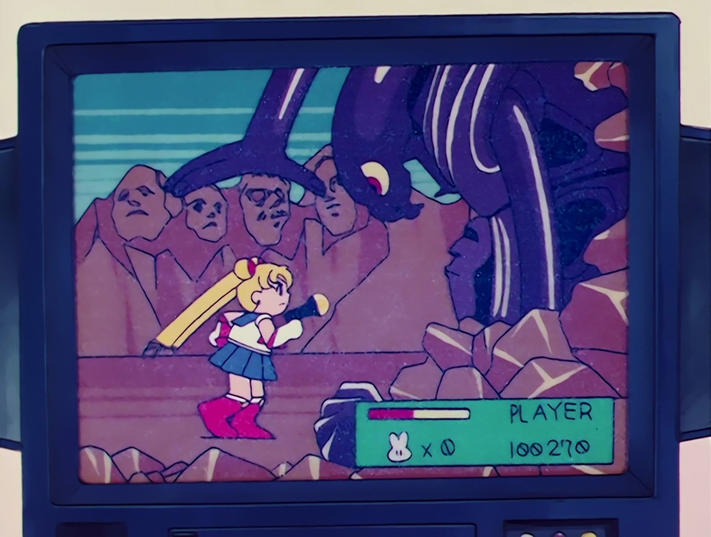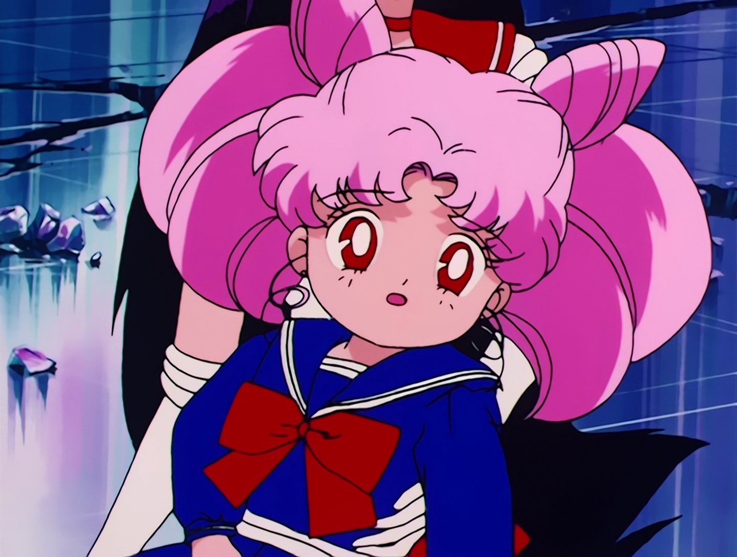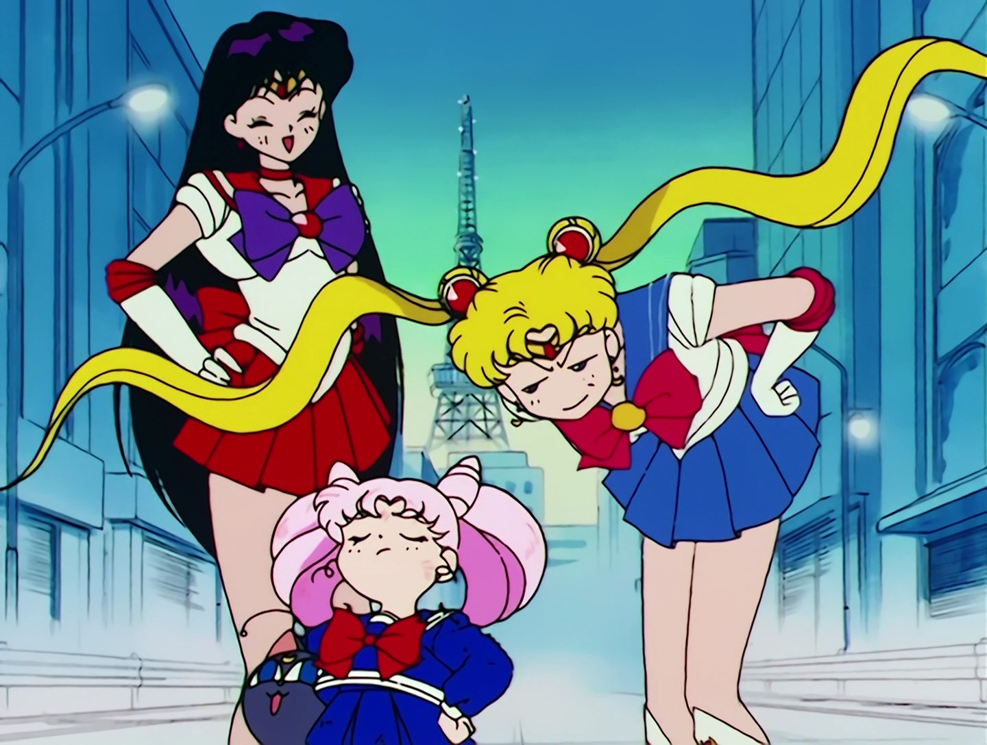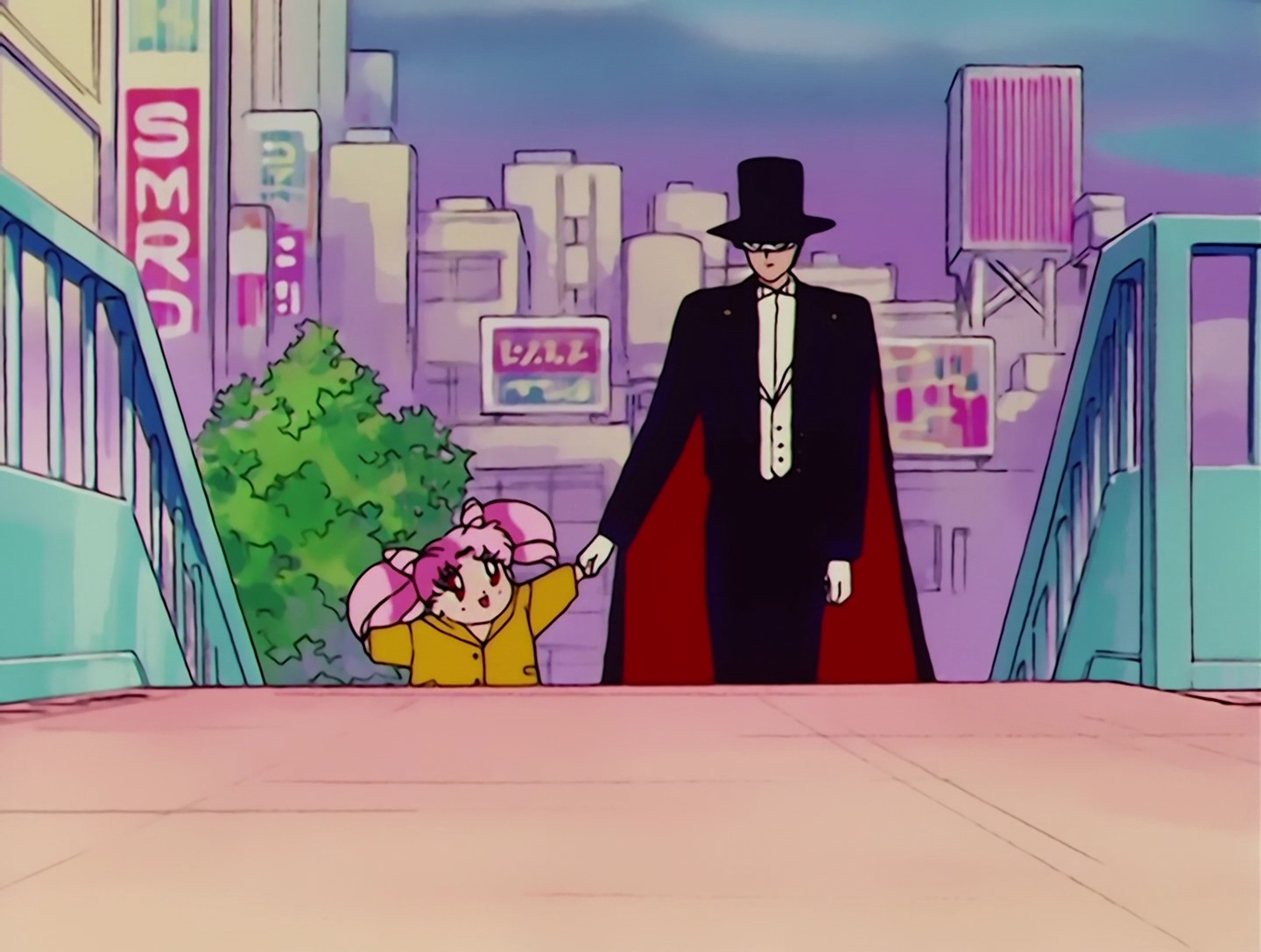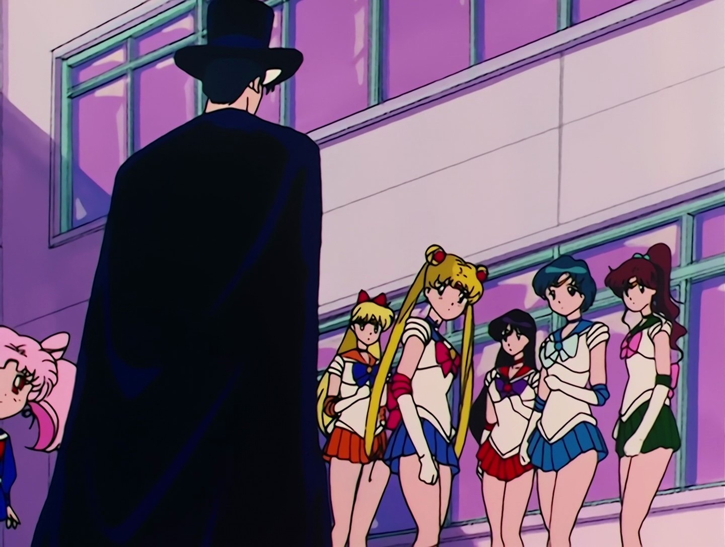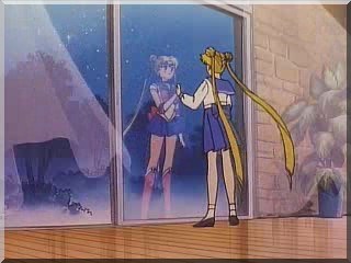 Chibiusa hat ins Bett gemacht. Darüber ist sie sehr traurig. Sie läuft weg und aktiviert den Zeitschlüssel, weil sie glaubt, in dieser Zeit keine Freunde zu haben. Doch der Durchgang schließt sich wieder. In ihrer Verzweiflung kommt es zu einem Energieausbruch, den der Erleuchtete vorhergesehen hat. Kermesite und Berthierite stellen Chibiusa, doch sie entkommt zunächst. Auf einer Baustelle kommt es zum großen Gefecht zwischen Rubeus und den vier Schwestern des Bösen gegen die 5 Sailor Senshi und Tuxedo Mask. Sailor Moon gelingt es schließlich, Rubeus zu vertreiben. Sie fragt Chibiusa, ob sie wirklich aus der Zukunft komme. Chibiusa fleht sie an, ihre Mutter zu beschützen. |