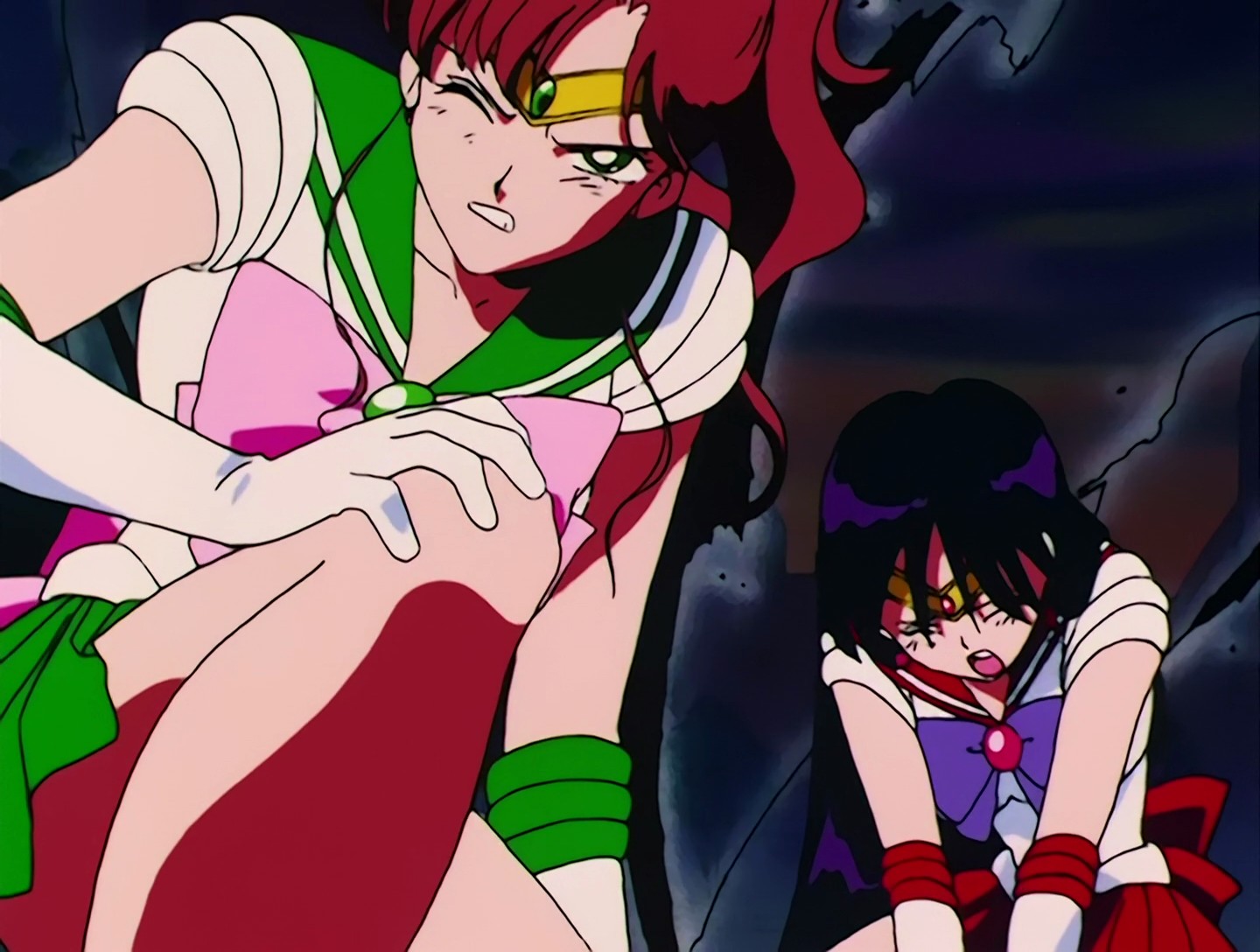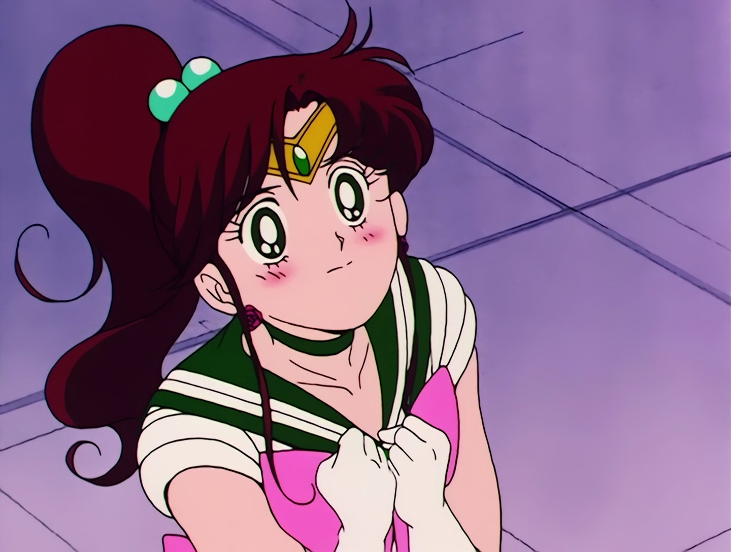 In dieser Aufnahme hat Sailor Jupiters Kragen einen weißen Streifen statt der erforderlichen zwei.