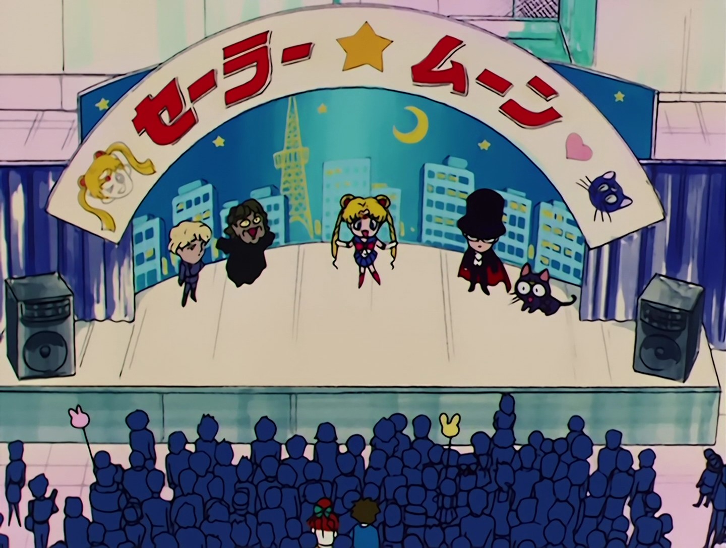 Minako rettet auf dem Schulweg ein kleines Mädchen namens Mie vor den bösen Buben und erzählt ihr von Sailor Venus. Mie kennt nur Sailor Moon, doch bald bekommt sie Gelegenheit, beide Sailor Kriegerinnen in Aktion zu sehen, als ein Bus mit Kindern von einem Kardian überfallen wird. Der Kardian ist zu stark für die Senshi, aber die Kinder vertrauen ihnen und so kann Sailor Venus ihre Kräfte verstärken und ihn mit ihrem neuen Crescent Beam Shower erledigen. |