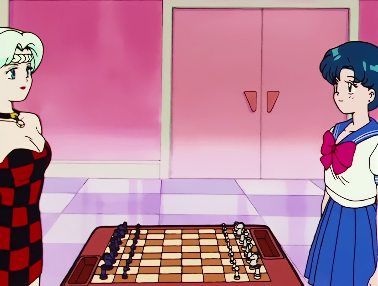 Ami tritt zur Schachweltmeisterschaft an. Allerdings ist der Austragungsort einer der Ursprungspunkte von Neo Crystal Tokyo. Rubeus schickt Berthierite. Als Ami ihr Treiben entdeckt, greift Berthierite sie an und Ami muss sich vor ihr verwandeln. Ein paar Tage später treffen die beiden während der Meisterschaft beim Schlussduell wieder aufeinander. Berthierite lockt sie in eine Falle und friert Ami Stück um Stück ein, doch Tuxedo Mask bricht den Bann. Petzite und Calaverite wenden sich von Berthierite ab, weil sie versagt hat. Sie will sich und alle anderen töten, doch Kermesite überredet sie, stattdessen als ein ganz normaler Mensch glücklich zu werden - so wie sie. |