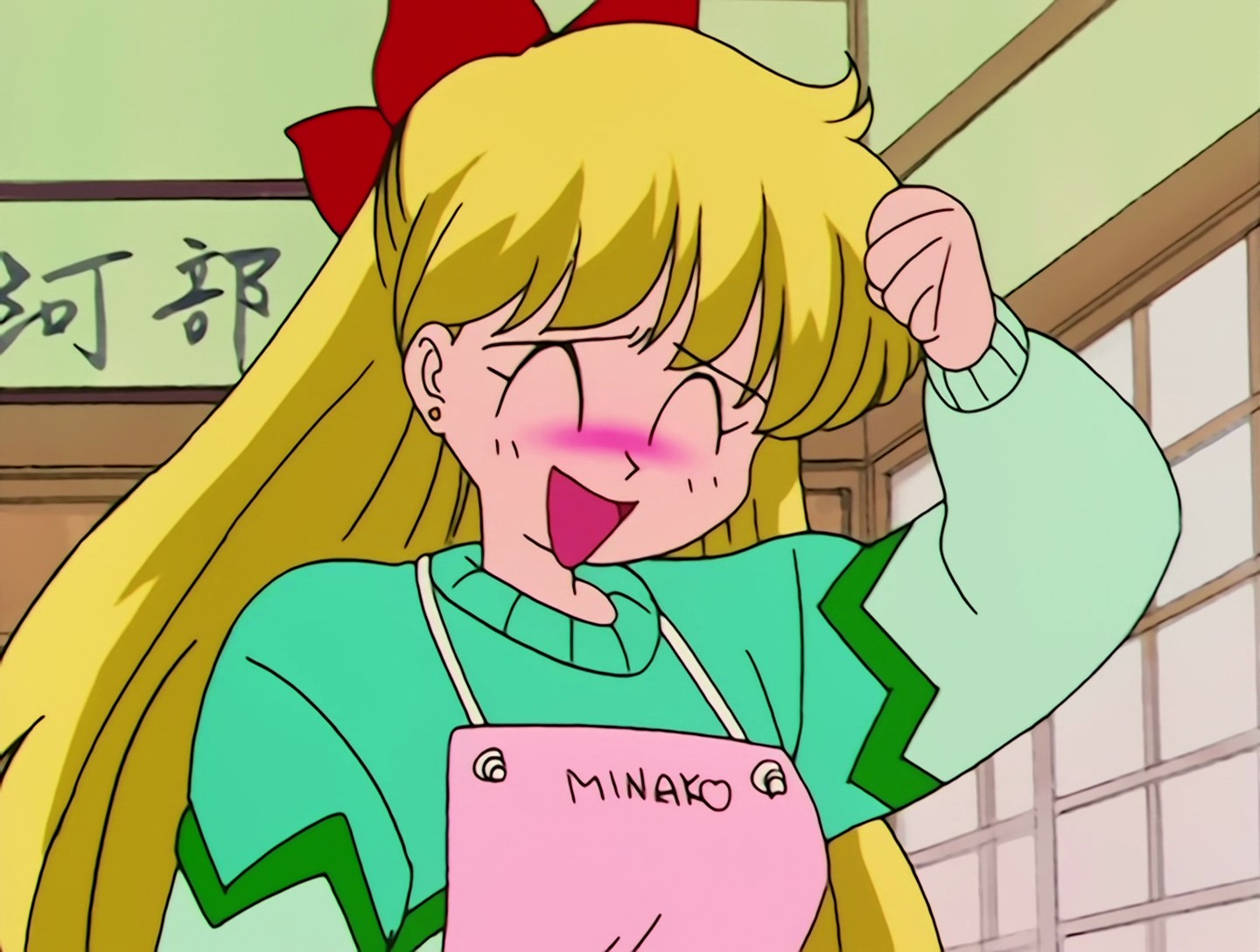 Auf Minakos Schürze steht ihr Name.