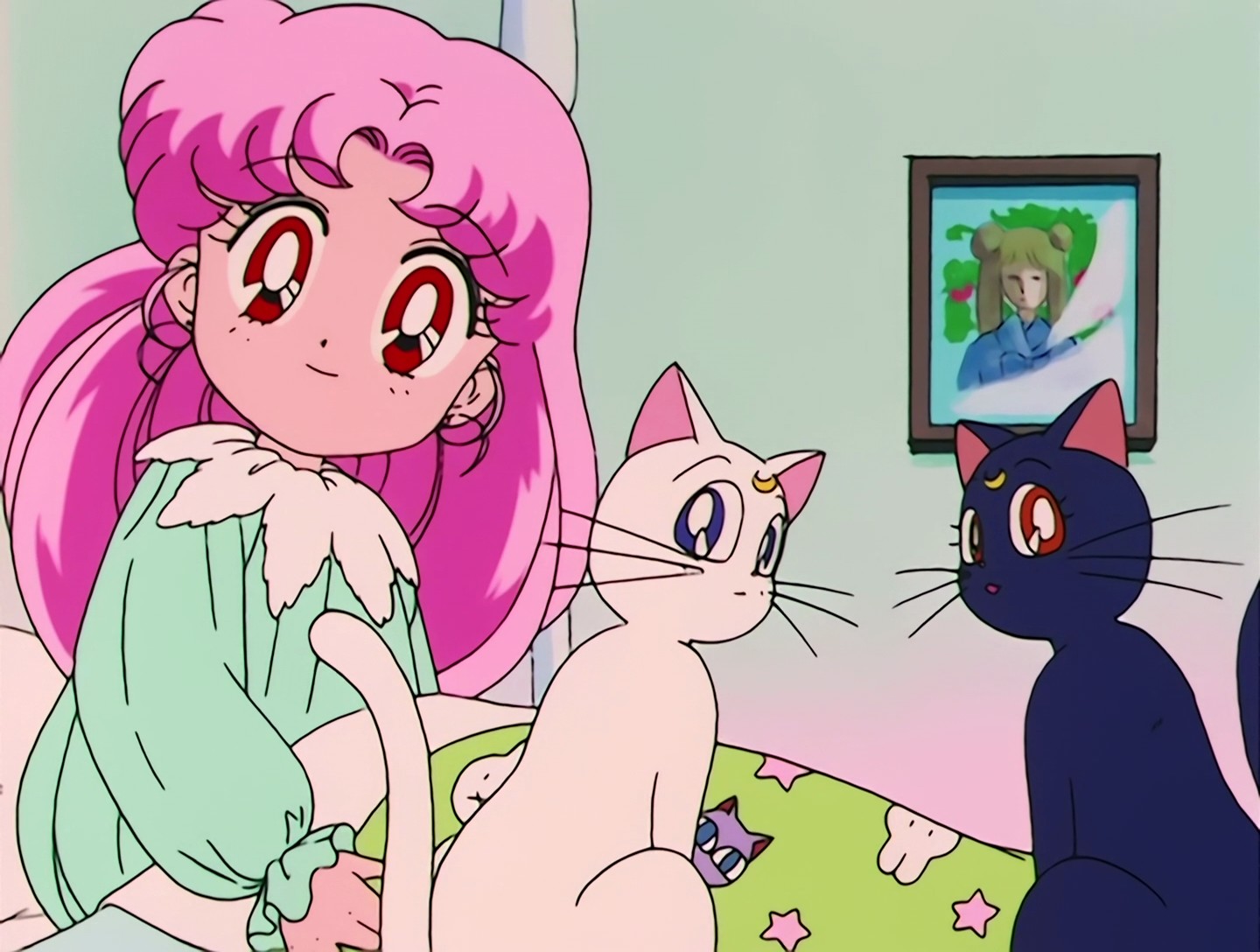 An der Wand hängt ein Bild auf welchem ein Mädchen zu sehen ist, welches sehr Usagi ähnelt.