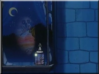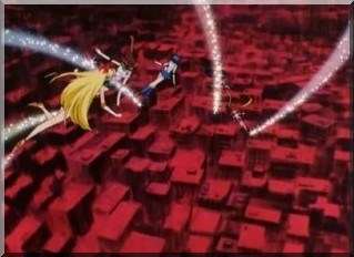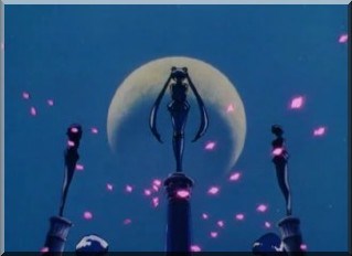 Das Sailor Team trifft ein. Kaorinight entführt Tuxedo Mask zum Tokyo Tower. Um Tuxedo Mask zu retten lässt sich Bunny dort von dem Daimon ihren Herzkristall herausnehmen. Uranus und Neptun tauchen auf und bringen ihn an sich. Aber es ist kein Talisman drin. Sie geben ihn Bunny zurück. Kaorinight nennt Bunny Sailor Moon. Da tauchen die 4 Senshi wieder auf, Sailor Venus hat sich als Sailor Moon verkleidet. Wütend über ihren scheinbaren Irrtum wirft Kaorinight Bunnys Brosche weg. Die verwandelt sich in Sailor Moon und zusammen kämpfen sie zuerst gegen den Daimon, den Sailor Moon rasch besiegt und dann gegen Kaorinight. Die erweist sich als extrem gefährlich, doch am Schluss wird sie mit ihrer eigenen Waffe besiegt und verschwindet im Abgrund. (Aber sie kommt wieder!) Professor Tomoe beauftragt die erste der 5 Hexen, Eugeal, ihren Platz einzunehmen. |