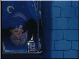 Chibiusa besucht Hotaru, doch Kaorinight wirft sie raus. Hotaru läuft ihr nach, doch sie bricht zusammen und wird von Ami und Bunny ins Krankenhaus gebracht. Dort träumt sie von früher, wie sie in der Schule als Hexe galt und wie sie in ihrer seltsamen Trance gefährliche Dinge tat (und immer noch tut). Später nimmt Haruka sie und Chibiusa im Auto mit nach Hause. Sie kommen an einem Park vorbei, wo gerade Mimet einem ihrer Schnulzen-Stars den Herzkristall stehlen will. Das Sailor Team vertreibt den Daimon und der rumpelt mit Hotaru zusammen, die ihn mit ihrer seltsamen Macht ausschaltet. Sie meint dann zu Chibiusa, sie dürften sich nicht mehr sehen, weil sie ihr sonst sicher weh tun würde und läuft davon. |