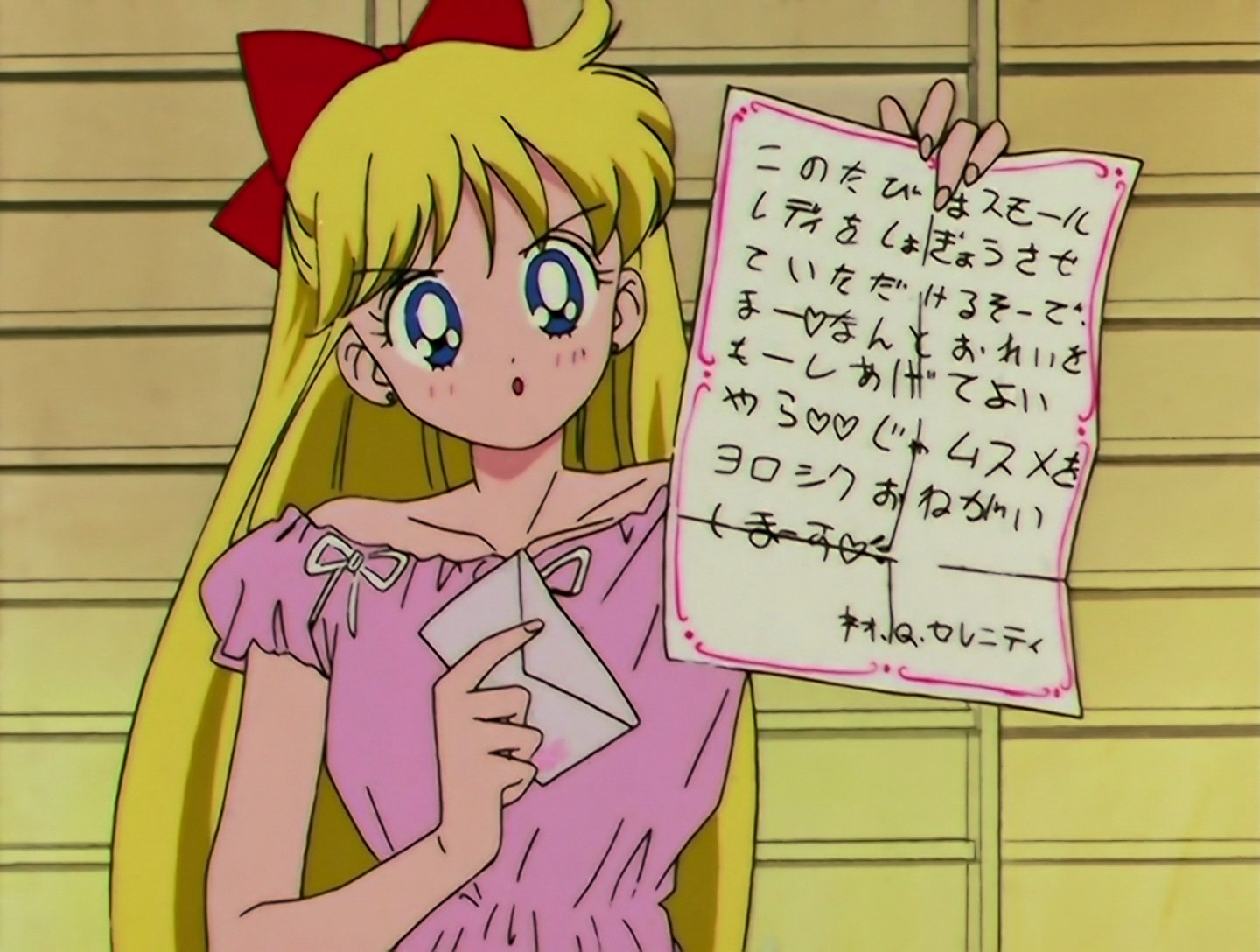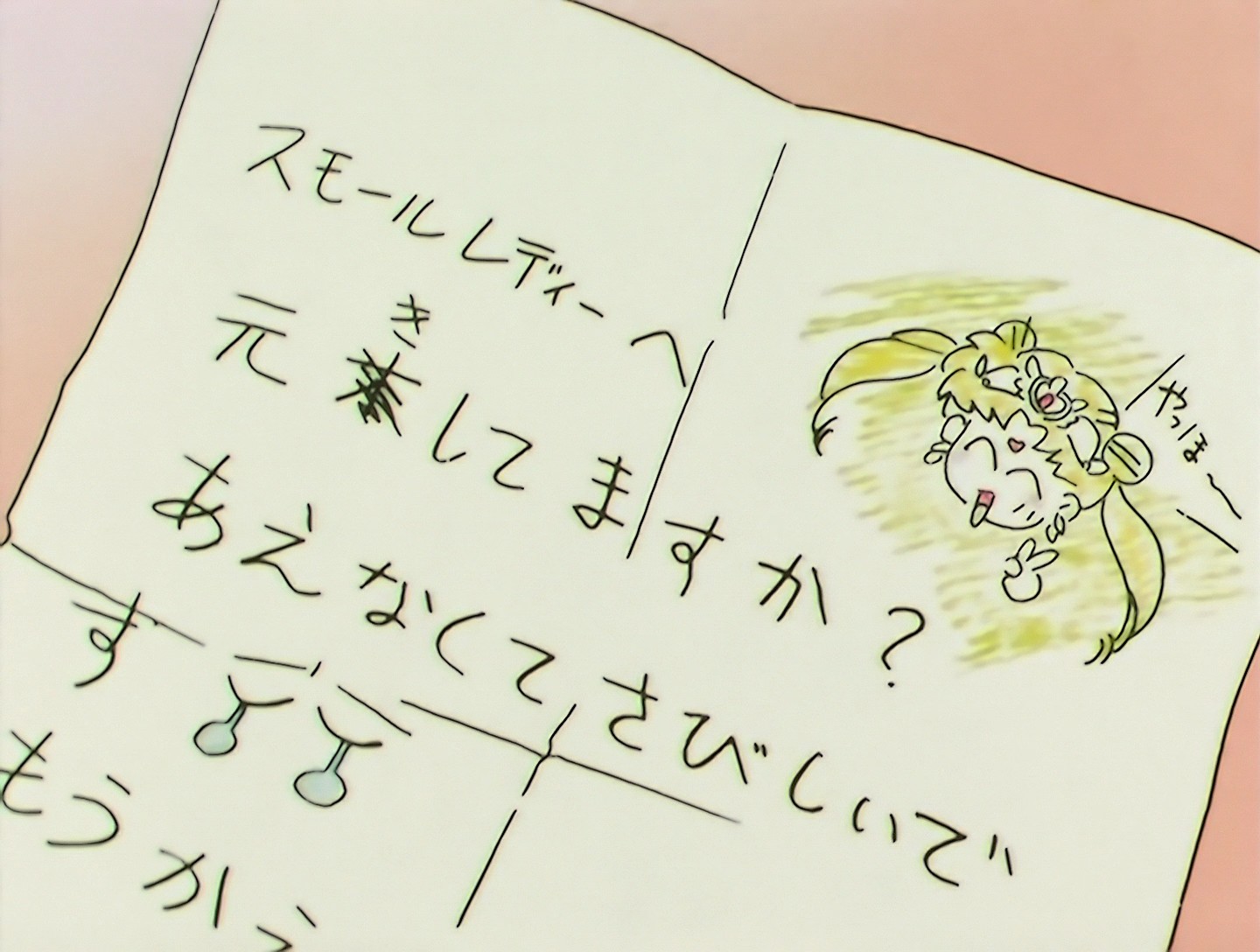 Der Brief von Neo Königin Serenity an Chibiusa wurde fast ohne Kanji geschrieben, was sie in ihrem Alter hätte tun können, weshalb Minako Usagi neckt, indem sie fragt, ob der Brief vollständig in Hiragana sei.