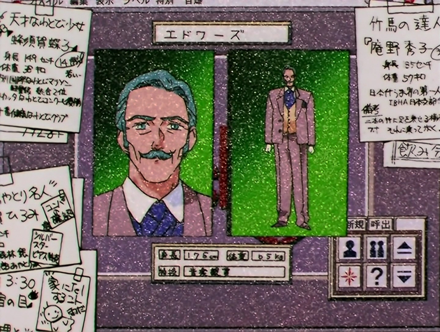 Auf Mimets Computer erscheinen Daten zum Botaniker Yoshiki Kurebayashi: Größe – 183 cm, Gewicht – 82 kg.
