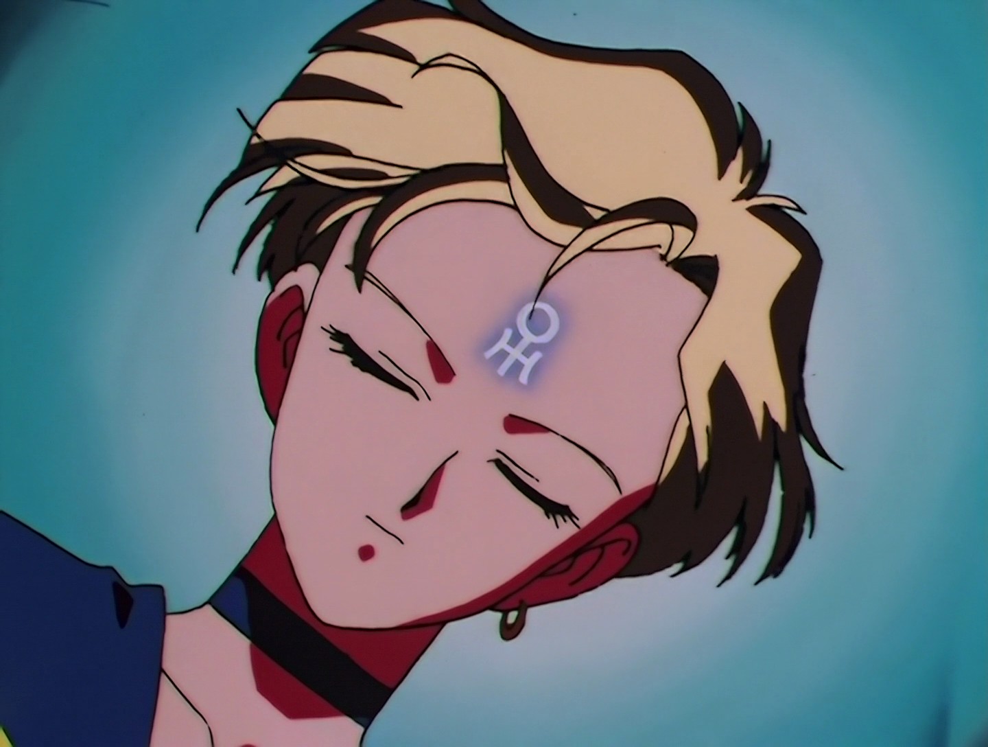 Makoto und Bunny machen einen Stadtbummel. Dabei werden sie fast von Haruka über den Haufen gefahren. Haruka tut es sehr leid. Mit ihrem Halstuch verbindet sie Makoto, die sich daraufhin in Haruka verknallt. Später verliert sie das Tuch und ein Daimon schlüpft hinein. Er greift an, wird aber von Sailor Moon erst mal vertrieben. Haruka und Michiru machen dann mit Makoto einen Ausflug, denn sie haben gesehen, dass Makoto das neue Ziel ist. An der Uferpromenade greift der Daimon erneut an, raubt Makoto den Herzkristall und schleudert Haruka und Michiru ins Gebüsch. Dort können sie sich unbemerkt verwandeln. Die Senshi tauchen auf und besiegen den Daimon, aber Neptun und Uranus geben den Herzkristall erst zurück, nachdem sie festgestellt haben, dass kein Talisman drin ist. Das macht Sailor Jupiter so wütend, dass sie Uranus angreift, allerdings ohne Erfolg. |