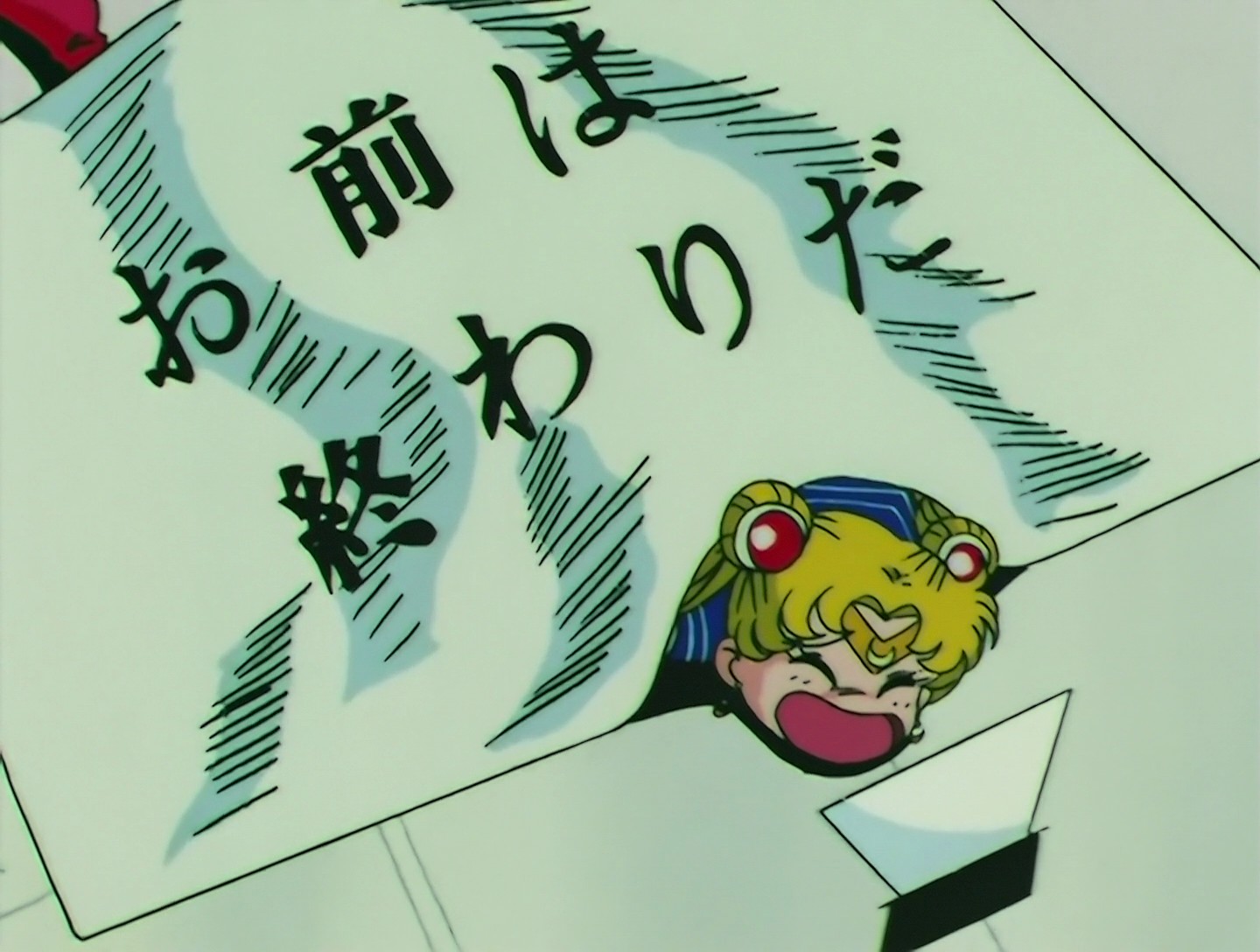 Die Schrift auf dem Stück Papier, das Sailor Moon an die Erde klebt, bedeutet: Dies ist dein Ende.