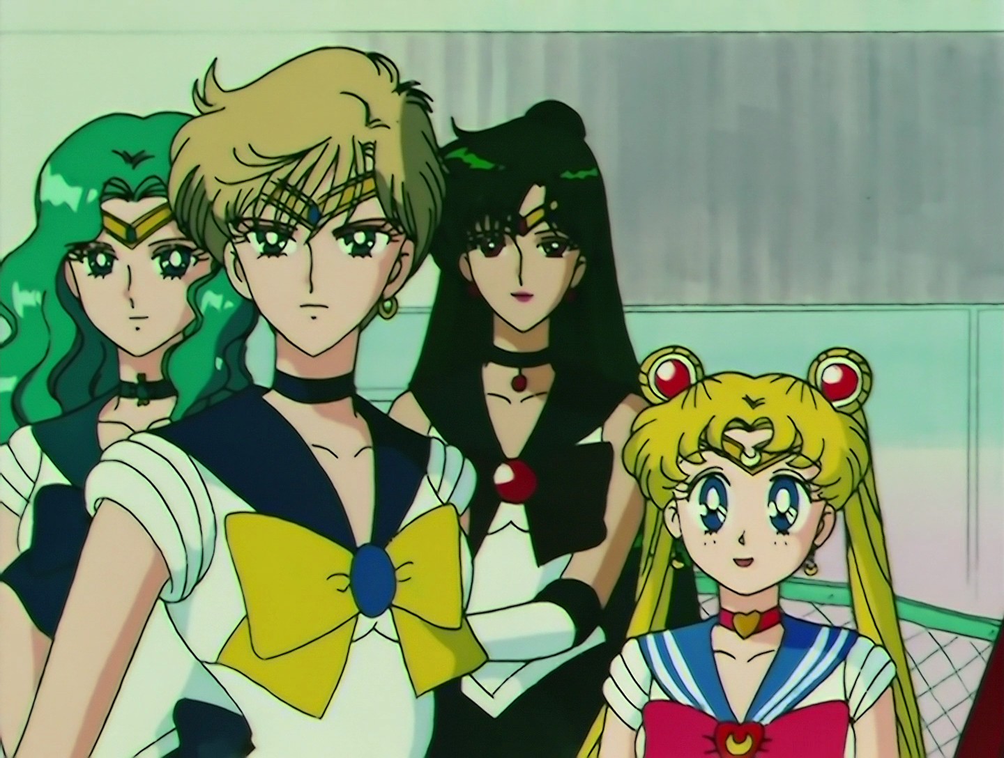 Als Sailor Moon den Inner Senshi dafür dankt, dass sie ihr geholfen haben, den Daimon zu besiegen, ist Sailor Plutos Garnet Orb fälschlicherweise gold.
