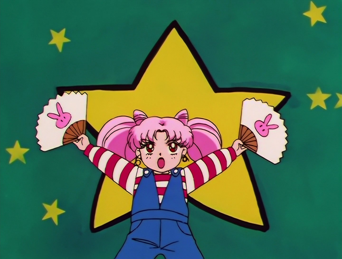 Chibiusa führt einen Fächertanz durch und auf diesen sind süße Kaninchen abgebildet. ^.^