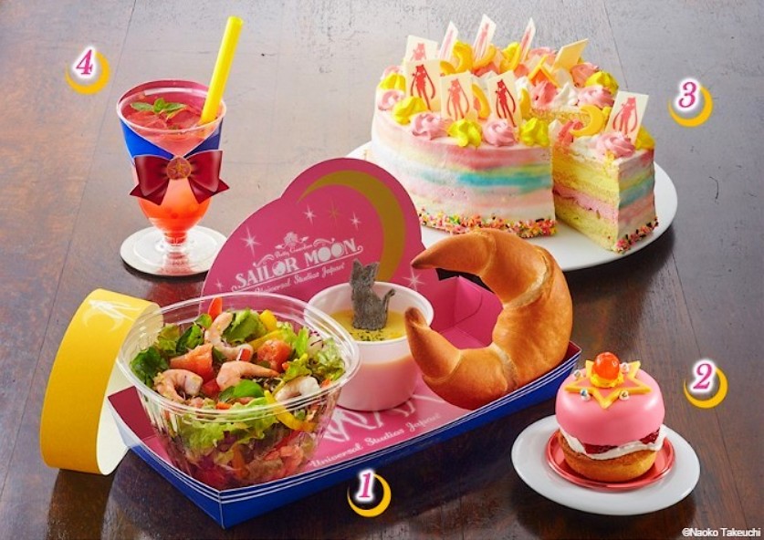 Zur Feier der allerersten Freizeitpark-Attraktion von Sailor Moon bringt USJ außerdem ein spezielles Menü mit Sailor Moon Speisen und -Getränken auf den Markt, bestehend aus dem Sailor Moon Cafe Plate (natürlich mit einem halbmondähnlichen Croissant) und dem Sailor Moon Compact Cake Strawberry Rare Cheese (nach dem Vorbild der Verwandlungsbrosche der Heldin), Moon Prism Power Cake Berry and Pistazien and Pineapple Cake und Sailor Moon Strawberry and Lemon Soda (serviert in einer speziellen kostümierten Tasse).